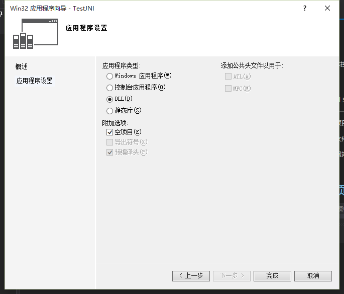 4.这里选择DLL,空项目,然后点完成。