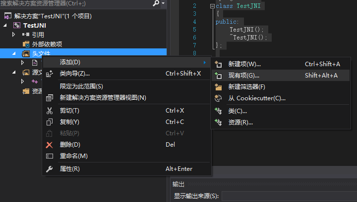 10.在C项目的头文件文件夹上面右键,添加-》现有项