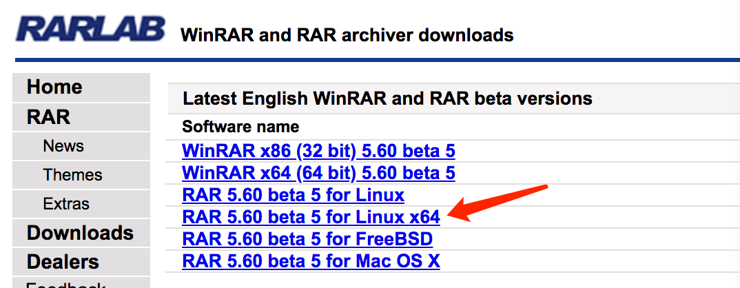 下载地址:https://www.rarlab.com/download.htm(目前最新为 RAR 5.60 for Linux),以最新的为准。
