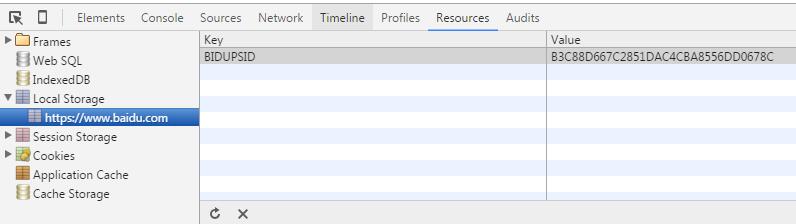在chrome开发者工具里的Resources - Local Storage面板以及Resources - Session Storage面板里,可以看到当前域名下的localstorage数据。