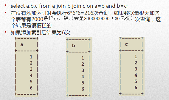 从上图可以看出,所有表的type为all,表示全表索引。也就是6 6 6,共遍历查询了216次。