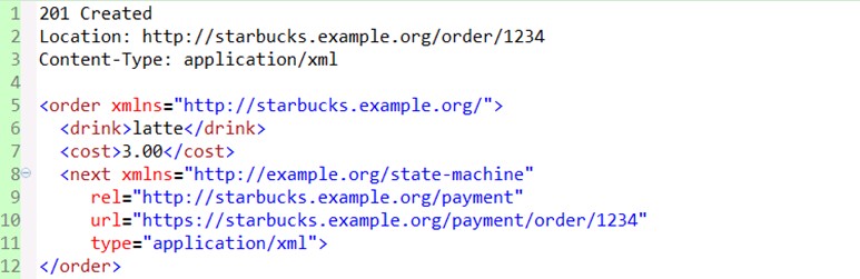 要达到这个目的,就要求在表述格式里边加入链接来引导客户端。在《RESTful Web Services》一书中,作者把这种具有链接的特性成为连通性。下面我们具体来看一些例子。