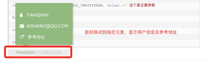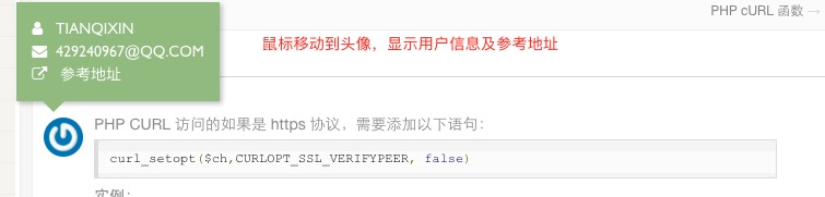 鼠标移动到用户头像及昵称上会显示用户详细信息及参考地址: