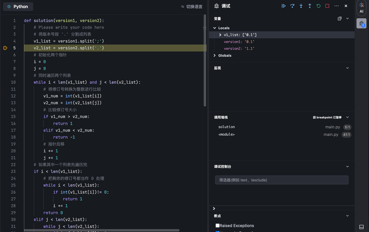 解答完毕后,点击顶部导航栏中的 运行 按钮,运行你的代码,然后在底部的 输出 面板中查看代码运行结果。