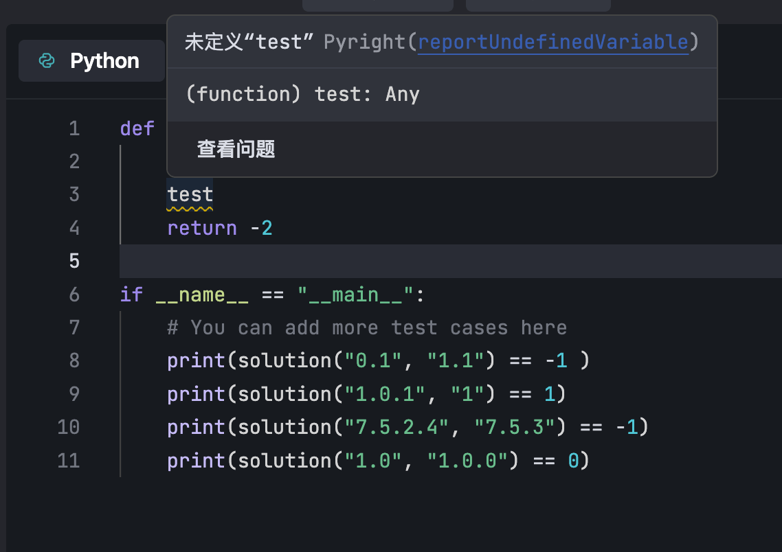 打开内置题目或添加自定义题目后,在题目面板右侧的代码编辑区域输入代码,解答题目。
