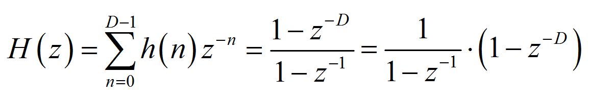 设滤波器抽取倍数为 D,则单级滤波器的冲激响应为: