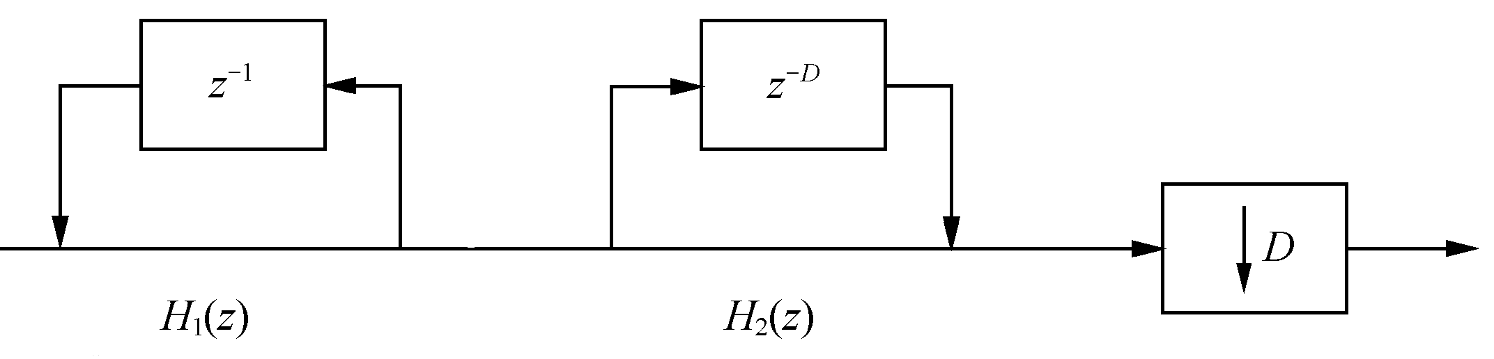 CIC 滤波器结构变换之前的参数 D 可以理解为梳状滤波器的延时或阶数;变换之后,D 的含义 变为抽取倍数,而此时梳状滤波器的延时为 1,即阶数为 1。