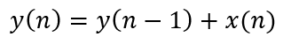 积分器是一个单级点的 IIR(Infinite Impulse Response,无限长脉冲冲激响应)滤波器,且反馈系数为 1,其状态方程和系统函数分别为: