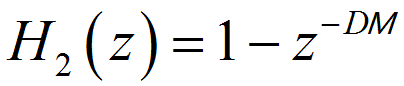 很多学者会引入一个变量 M,表示梳状器每一级的延时,此时梳妆部分的延时就不为 1 了。那么梳状器的系统函数就变为: