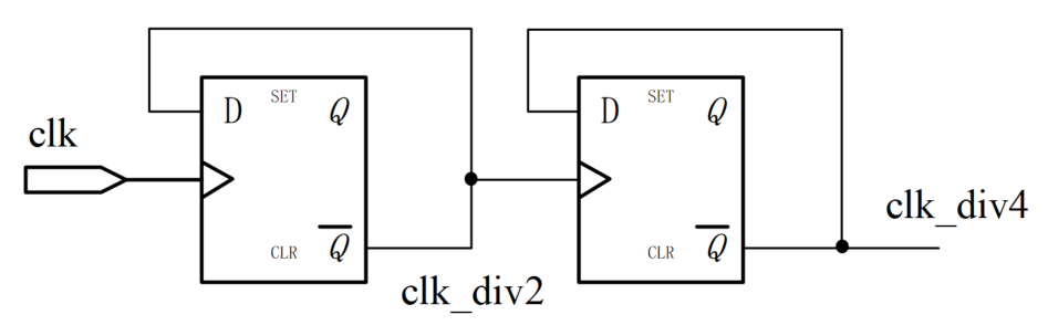 偶数分频不使用时钟双边沿逻辑即可完成占空比为 50% 的时钟分频,是最理想的分频状况。