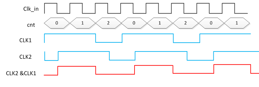 采用"与操作"产生占空比为 50% 的 3 分频时序图如下所示。