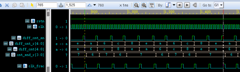 平均插入可以通过分频次数差累计的方法实现,7.6 分频的实现过程如下: