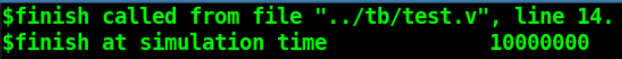 $finish(1),仿真退出时打印仿真时间和 $finish 所在的行信息,如下所示。
