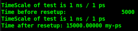 模块 test 时间精度为 ns,但是仿真器时间精度为 ps,所以打印的时间信息相差 1000 倍。