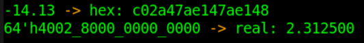 $display("-14.13 -> hex: %h", $realtobits(-13.14));