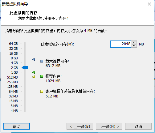内存也是要根据实际的需求分配。我的宿主机内存是8G所以我给虚拟机分配2G内存。