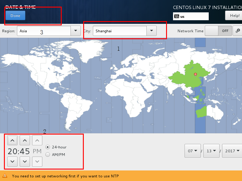 时区选择上海,查看时间是否正确。然后点击Done