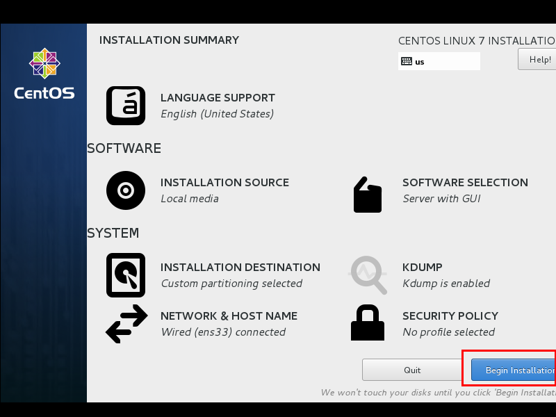 最后选择Begin Installation(开始安装)