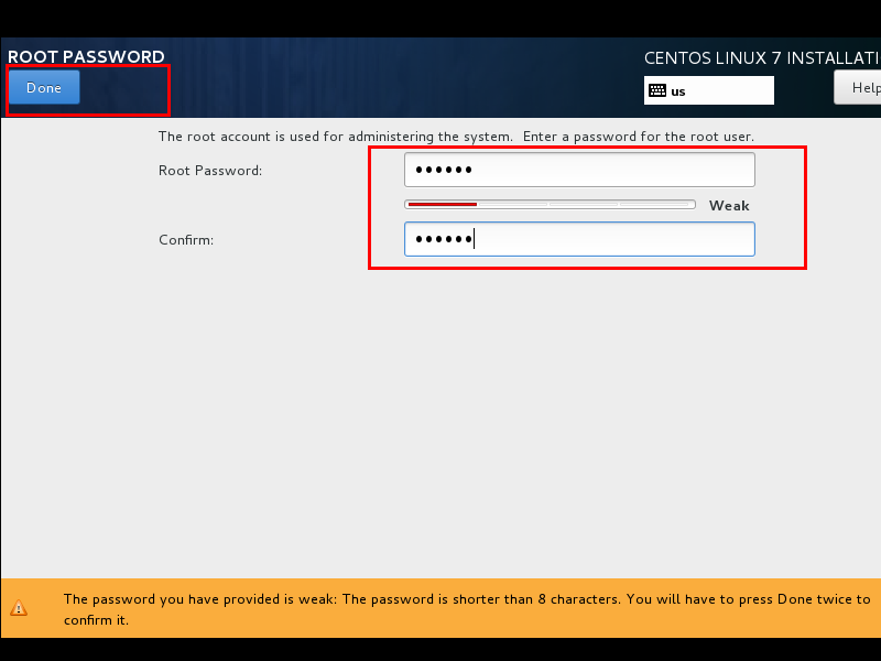 设置root密码后点击Done