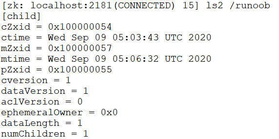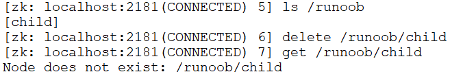 $ ls /runoob $ delete /runoob/child $ get /runoob/child