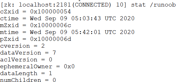 $ set /runoob 0 1 $ set /runoob 0 2 $ set /runoob 0 10 $ set /runoob 0 6