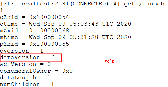 在终端二对此节点进行修改: