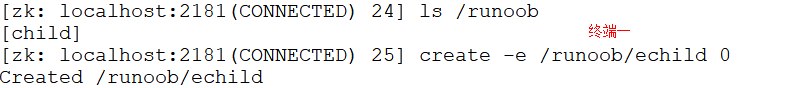 $ ls /runoob $ create -e /runoob/echild 0