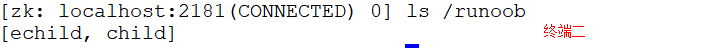 ctrl+c 关闭终端一连接后,查询终端二 /runoob/echild 节点消失。