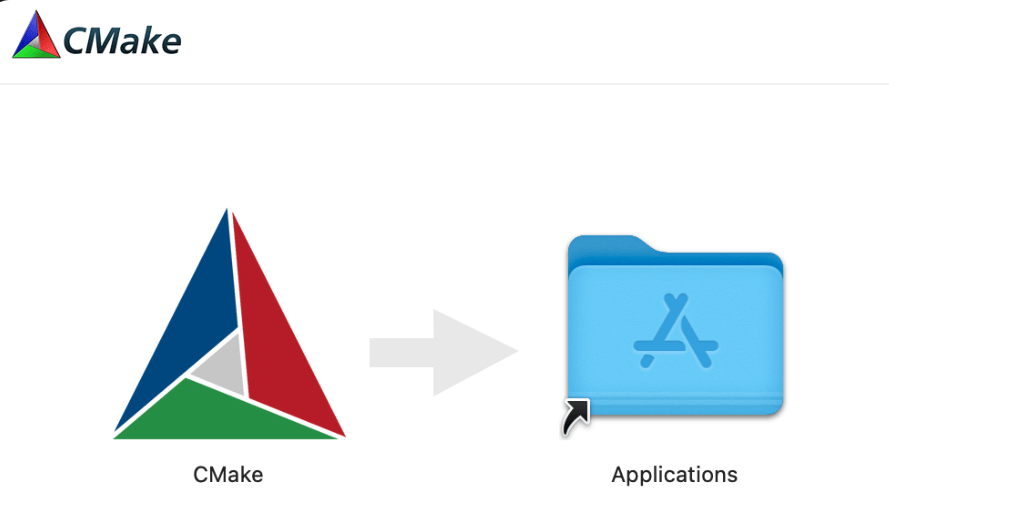下载并运行 .dmg 文件,拖动 CMake 图标到应用程序文件夹。