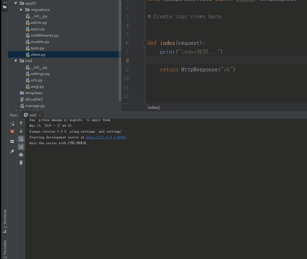 在 app 目录下新建一个 py 文件,名字自定义,并在该 py 文件中导入 MiddlewareMixin: