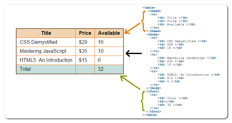 每个表格均有若干行(由 <tr> 标签定义),每行被分割为若干单元格(由 <td> 标签定义),表格可以包含标题行(<th>)用于定义列的标题。