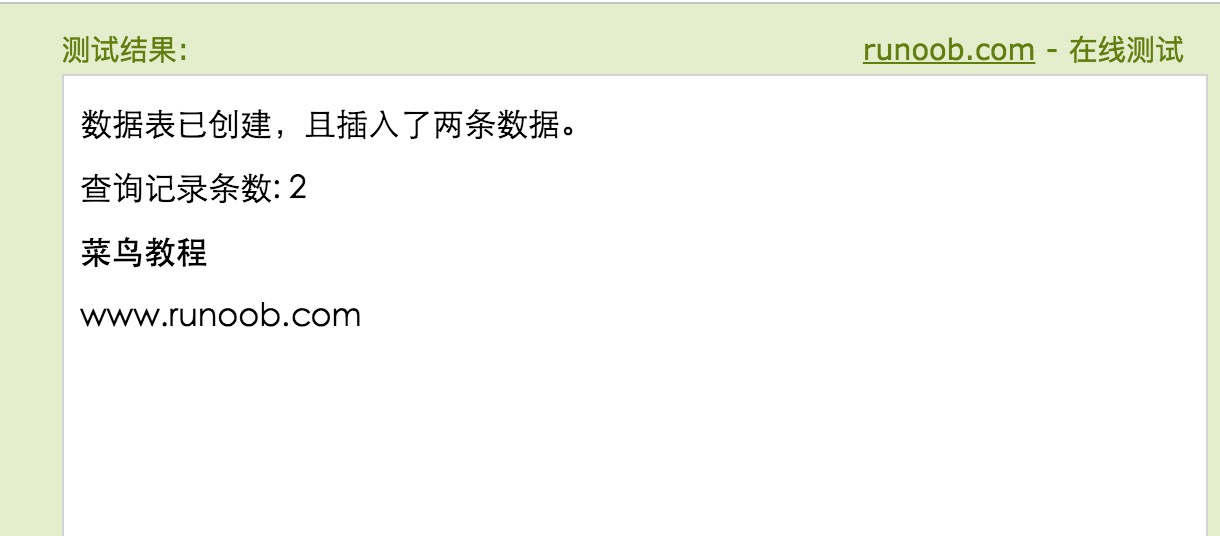 msg = '<p>数据表已创建,且插入了两条数据。</p>';