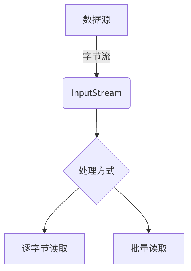 InputStream 是一个抽象类,这意味着你不能直接实例化它,但可以通过它的子类(如 FileInputStream、ByteArrayInputStream 等)来创建具体的输入流对象。
