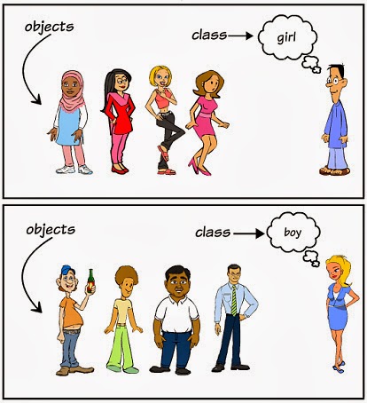 下图中男孩(boy)、女孩(girl)为类(class),而具体的每个人为该类的对象(object):