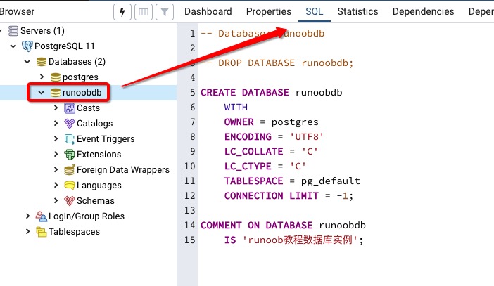 postgres=# \c runoobdb You are now connected to database "runoobdb" as user "postgres". runoobdb=#