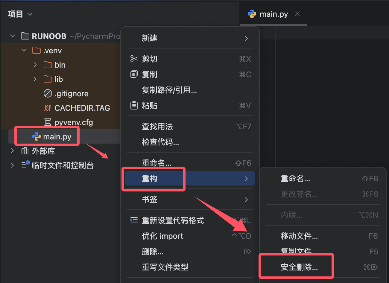 PyCharm 会检查是否有代码引用该文件 → 确认删除