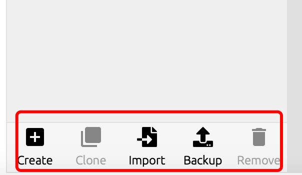 底部还有创建与删除环境的按钮,我们可以自由操作: