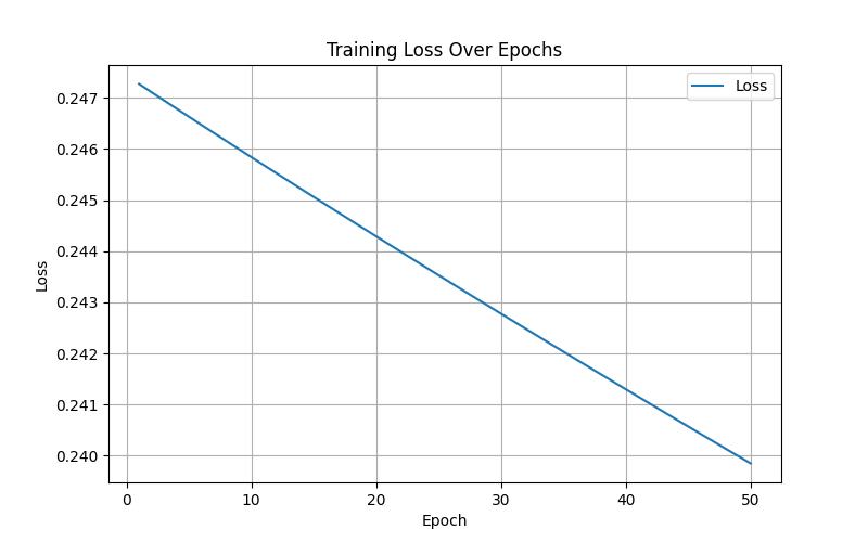 Epoch [10/100], Loss: 0.5247 Epoch [20/100], Loss: 0.3142 ... Epoch [100/100], Loss: 0.0957