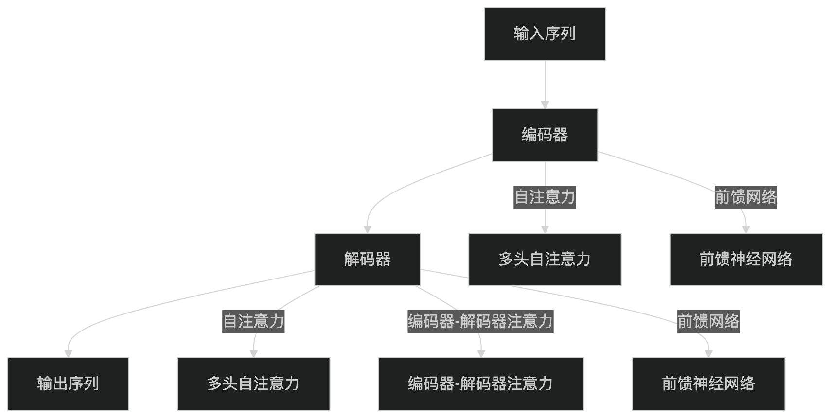 - 编码器-解码器注意力机制(Encoder-Decoder Attention):计算输出序列与输入序列的相关性。