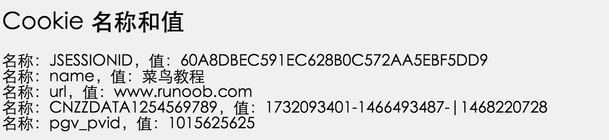 - 服务器脚本向浏览器发送一组 Cookie。例如:姓名、年龄或识别号码等。
