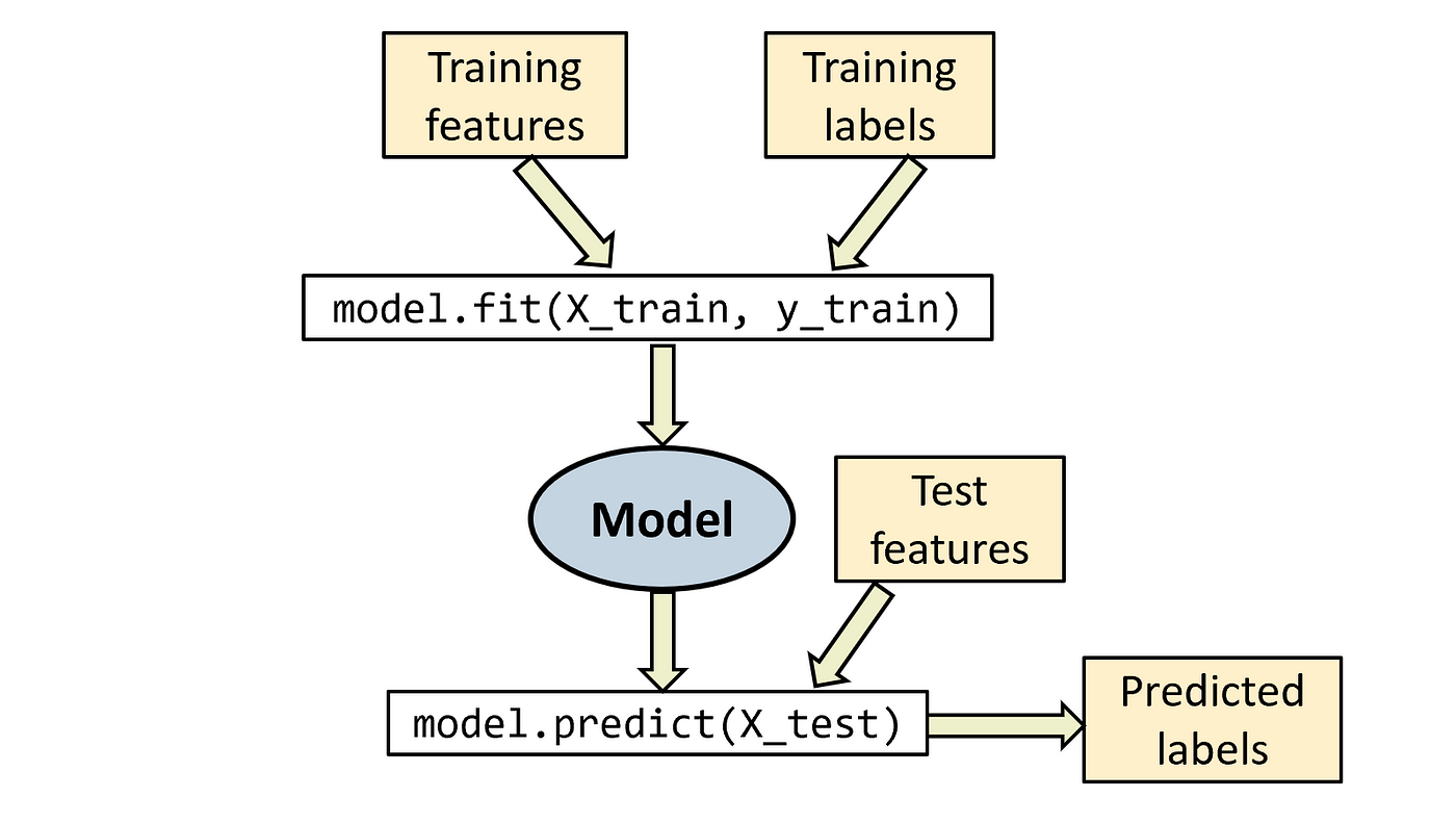 model.fit(X_train, y_train) - 预测(Predict):根据训练好的模型,对未知数据进行预测。