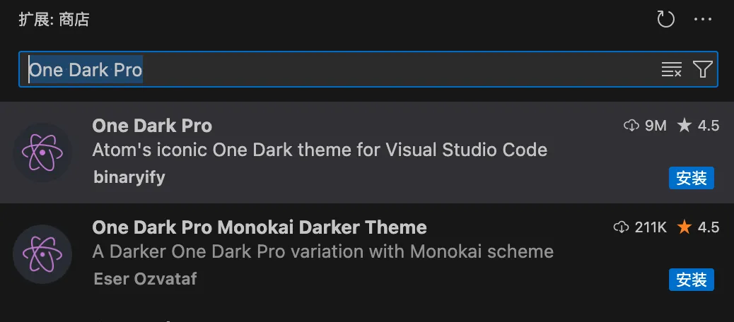 比如搜索 One Dark Pro 这个主题: