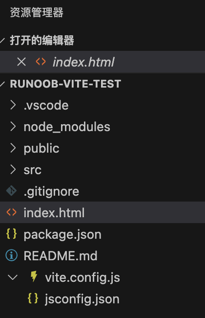 使用 Vite 创建的项目通常包含以下文件和文件夹: