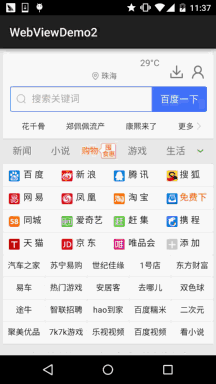 webView.loadUrl("http://www.baidu.com/"); //调用loadUrl方法为WebView加入链接