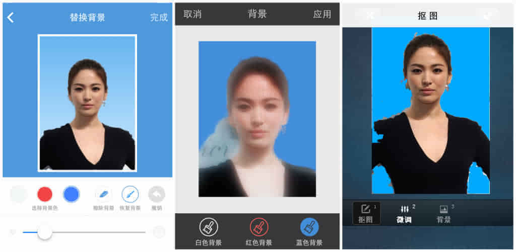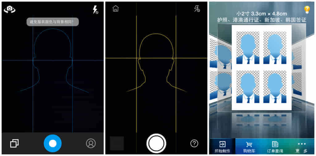 用户上传图片处理制作证件照,由于系统外的图片杂七杂八,不可控,不像系统内生图片那样规范,在背景替换这一环节系统能够对图片自动化识别、自动替换。这显然对技术有很高的要求。那么它们是怎么设计解决这一问题呢?「智能证件照」对上传的图片进行了规范过滤,不符合标准的被Kill掉;「最美证件照」更暴力,尊王攘夷,抵制一切外国货;「证件照」到是很高明,完全敞开胸怀,提供了活动框,进行手工裁剪。但是任何解决办法都会产生新的问题。「智能证件照」的半对外开放政策,也没有很好处理掉一些漏网之鱼,一些图片上传后与图像框存在一些间隙,这会让处女用户感觉这是系统的bug,使得名誉受损。「最美证件照」的全封闭设计,却在最开头添加了APP相册功能,这导致了结构逻辑矛盾,骨相扭曲。「证件照」手工裁剪好是好,但人工控制却没有相应规范,后续存在照片尺寸裁剪问题,图片清晰度问题,如果对这块进行优化,再配合滑动式微调,效果将更好。虽然他们对图片上传采用了不同的解决方式,但有人会想用户一般都会自己拍摄制作证件照,这个图片上传用处不大,是个鸡肋。但我们在肉相设计时,考虑过我们的用户是谁了么?像我们这种不敢爆照的测评分析人员就是吃素的么,不好好给肉吃,我就给你们好看。