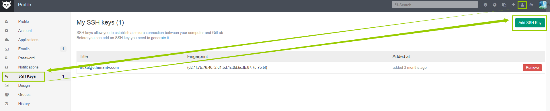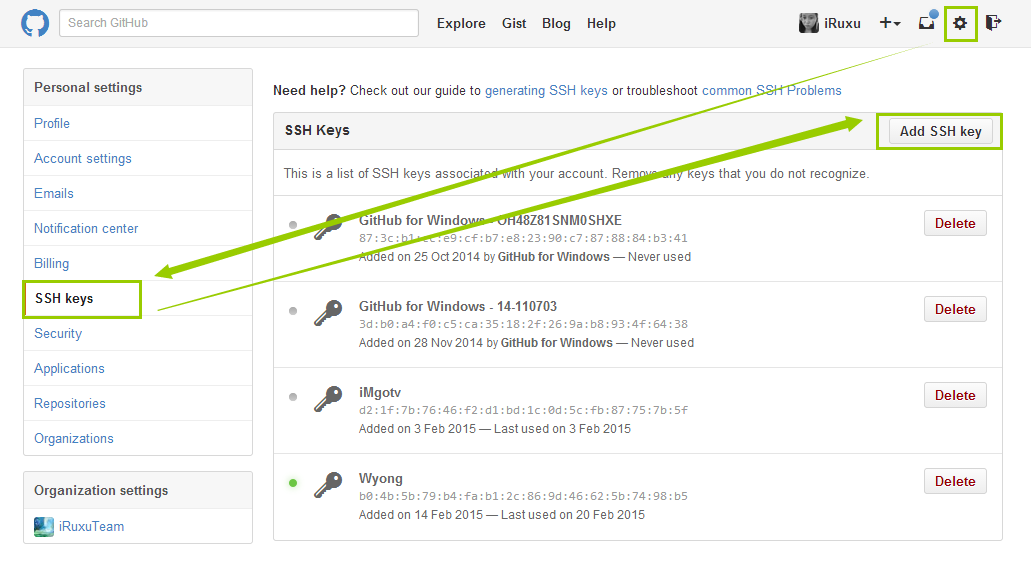 【Step2-添加密钥】去你的代码托管服务器,你的账号设置中,添加它。