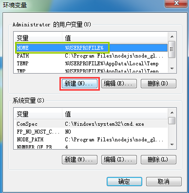 变量名HOME,变量值%USERPROFILE%