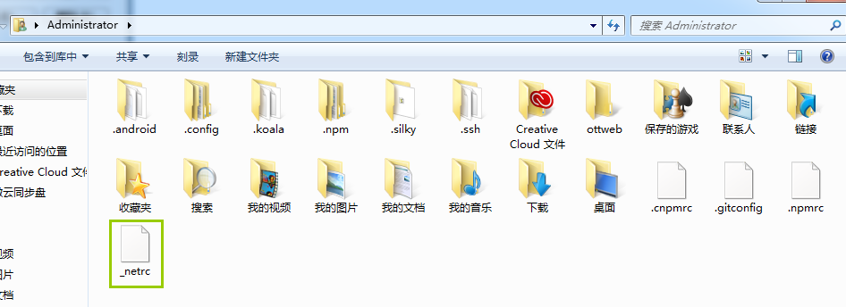 开始 - 运行 中打开%Home%,即windows的管理员账号文件夹。