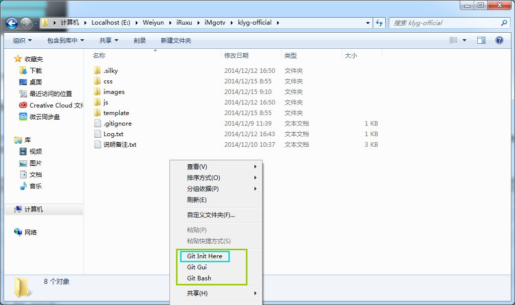 顾名思义,就是新建一个项目,跟你用PS新建一张画布一样。在你新建好的文件夹中右键创建即可,若点击Git bash则以此目录作为当前目录进入命令行状态。