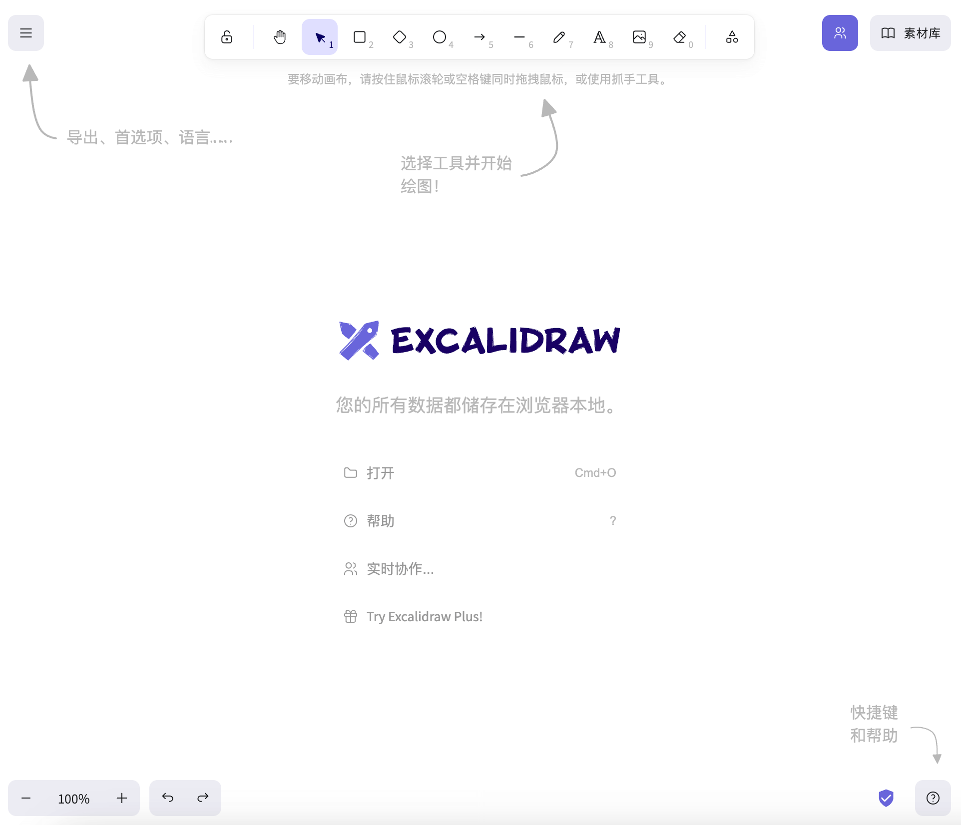 在线测试地址: https://excalidraw.com/